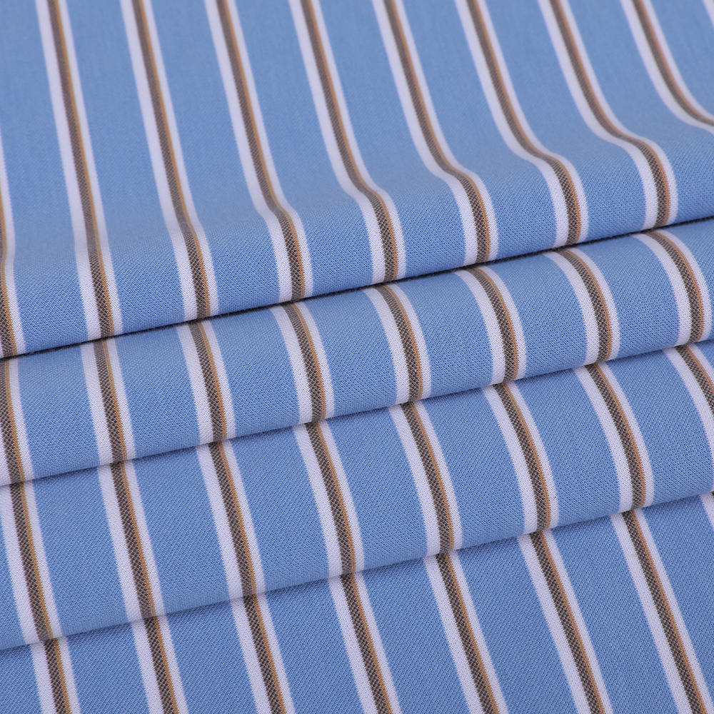 The surface of the sesame-point crisp striped shirt fabric is distributed with fine and uniform sesame-point texture, which is interwoven with the classic striped pattern to form a unique visual beauty, which not only maintains the traditional elegance of the striped elements but also adds rich layers of details.