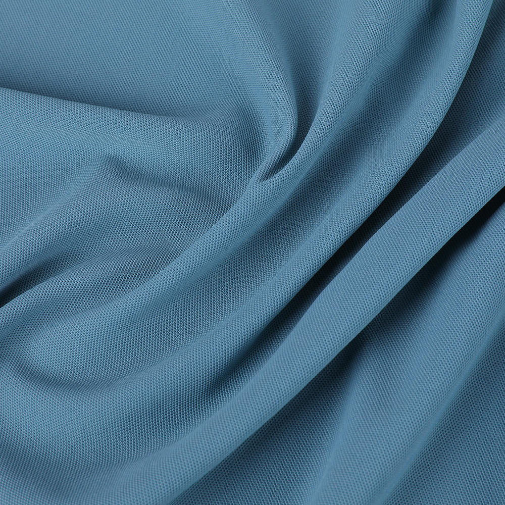 Lightweight moisture-wicking and quick-drying Double pique Functional sports polyester leisure fabric is a functional fabric designed for sports and leisure, carefully woven from 99.999% polyester. Its unique double-bead mesh structure, through a precise weaving process, forms a dense and uniform mesh pattern, which effectively improves the breathability and air circulation of the fabric, ensuring that the wearer can quickly discharge excess heat and keep the body dry and comfortable during high-intensity exercise. In terms of functionality, the fabric combines advanced moisture-wicking and quick-drying technology. Through high-tech fiber modification, the fabric can efficiently absorb and diffuse sweat on the body surface, and use the micro-channel structure inside the fabric to quickly guide sweat to the outer layer of the fabric and evaporate, thereby effectively preventing sweat accumulation and keeping the inside of the clothing dry and fresh. This feature is of great significance for improving sports performance and reducing fatigue. In addition, the fabric also has good durability and wrinkle resistance, can resist daily wear and tear, keep the shape of clothing stable, and extend the service life. Its lightweight texture and good elasticity allow the clothing to better fit the curves of the human body, providing a comfortable wearing experience while facilitating free movement without restraint.