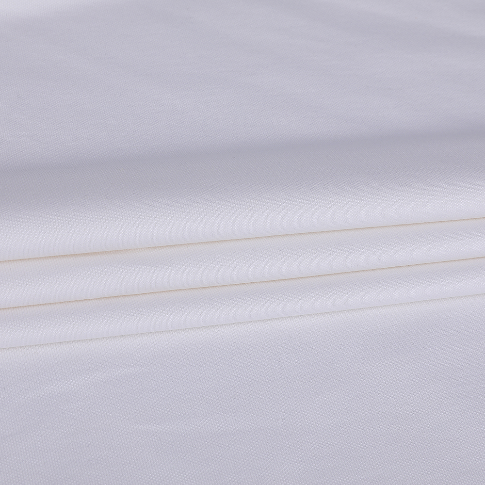 Double Pique Moisture wicking and quick drying Silk cotton and polyester Outdoor leisure sports fabric combines three materials: silk, polyester, and cotton. Through scientific proportions, the fabric performance is optimized. Specifically, the 36% silk component in the fabric provides the wearer with good temperature regulation and comfort experience with its natural delicate touch, good moisture absorption, and breathability. The addition of silk not only improves the texture of the fabric but also enhances its skin-friendliness and durability. At the same time, the 34% polyester component, with its good wear resistance, wrinkle resistance, and quick drying performance, ensures that the fabric maintains good durability and practicality during long-term outdoor activities. The quick-drying characteristics of polyester can effectively absorb and diffuse sweat, accelerate the evaporation process, and avoid the discomfort caused by sweat accumulation during exercise. In addition, the 30% cotton component, with its natural moisture absorption and breathability, brings a more balanced comfort experience to the fabric. The addition of cotton fiber further enhances the breathability and softness of the fabric, allowing the wearer to feel more relaxed and comfortable during exercise. The double-pique mesh structure design allows the fabric to maintain breathability while also having good elasticity and recovery. This structure not only improves the durability of the fabric but also allows it to maintain its original shape and texture after multiple washes.